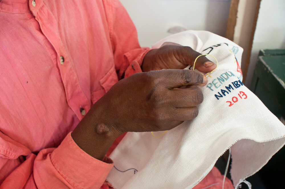 나미비아 여성이 손으로 한땀한땀 수놓았어요.