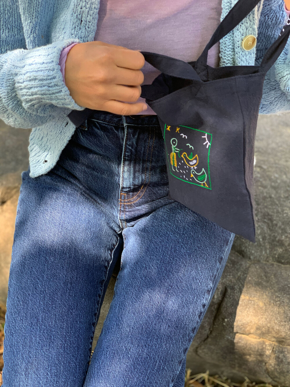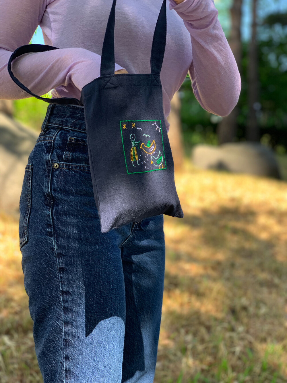눈을 감고 올록볼록 자수를 만져보며 이야기를 상상해보세요.