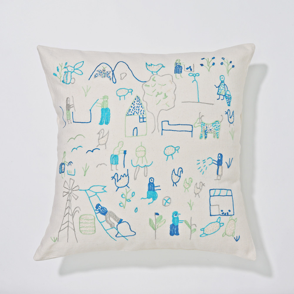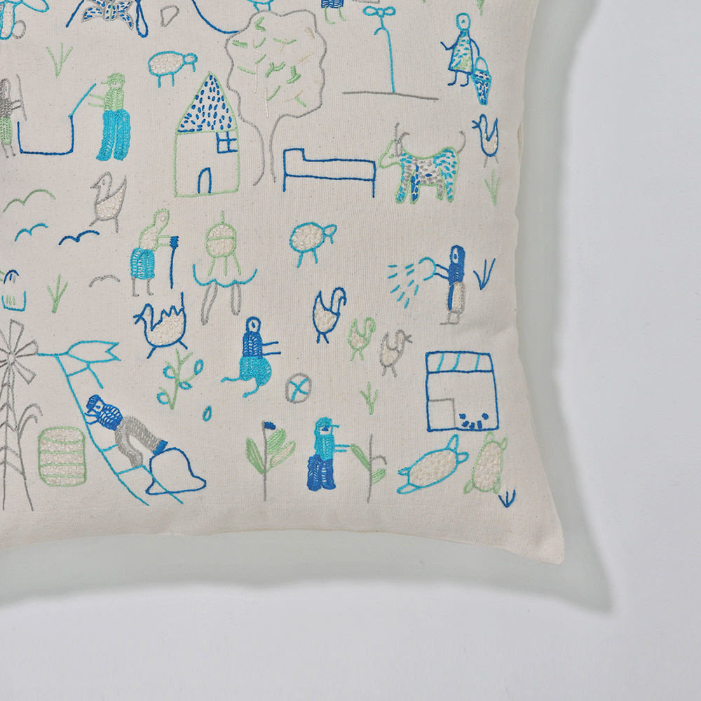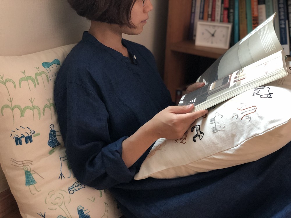 툭툭 찍어낸 물건들 속 자리잡은 손자수는 특별한 편안함을 전합니다.
