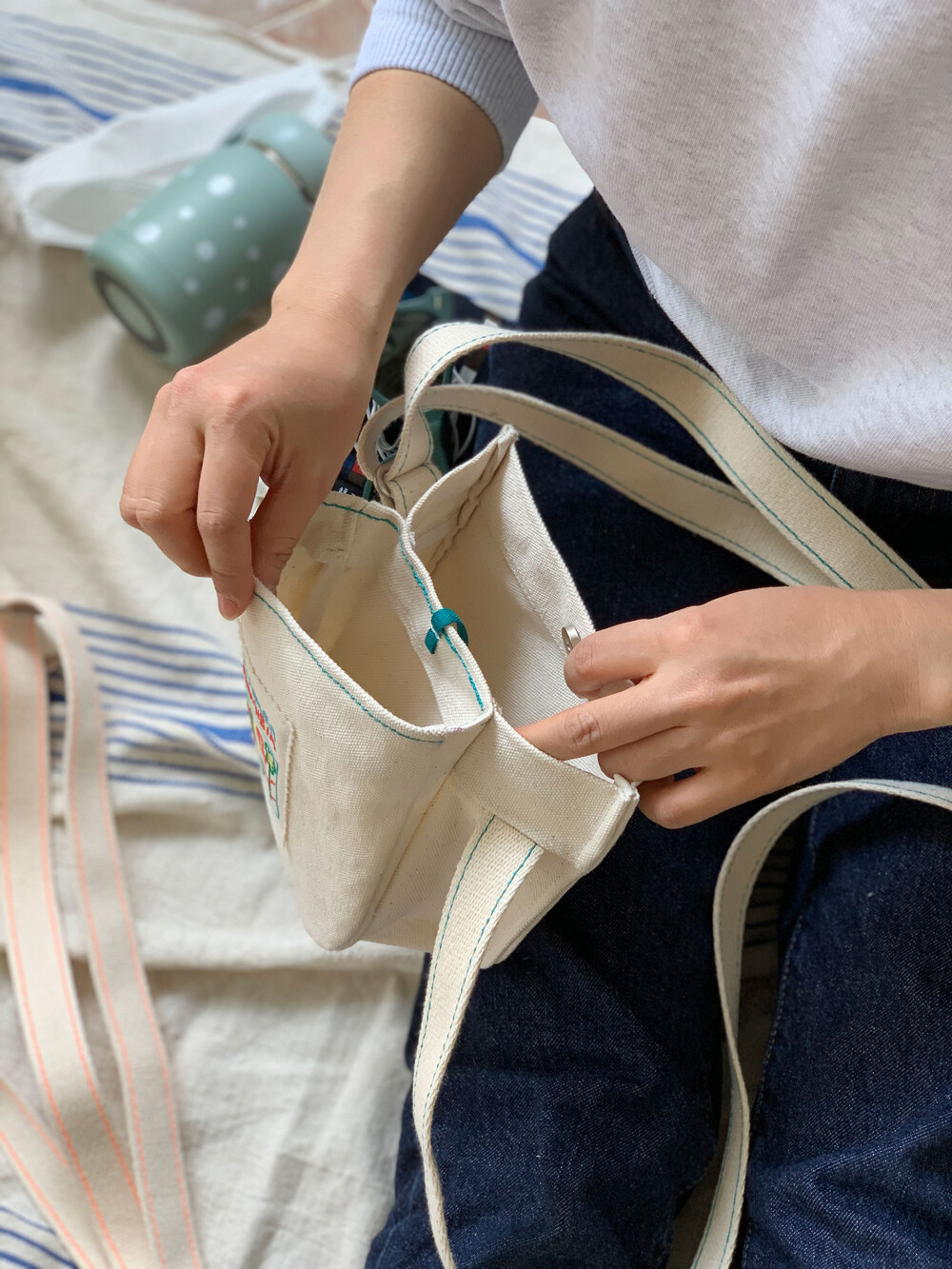캔버스 원단에 적용하느라
