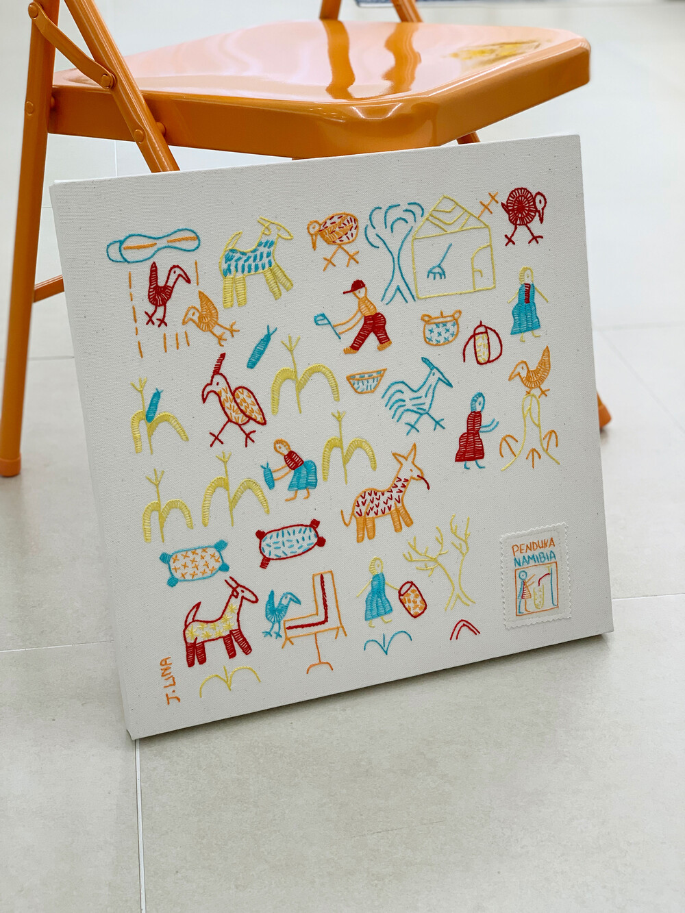 나미비아 여성이 손으로 한땀한땀 수놓았어요.