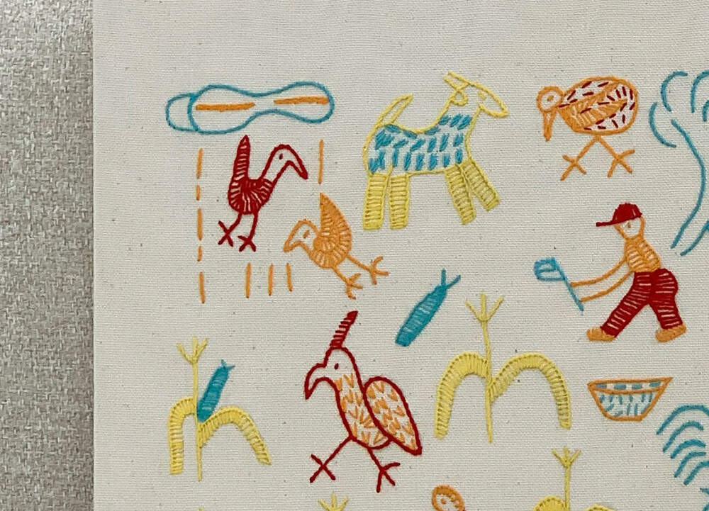 새모이 준 날, 단비 내린 날 등 이야기가 모두 다른 자수를 보며 웃음짓게 되는 것.