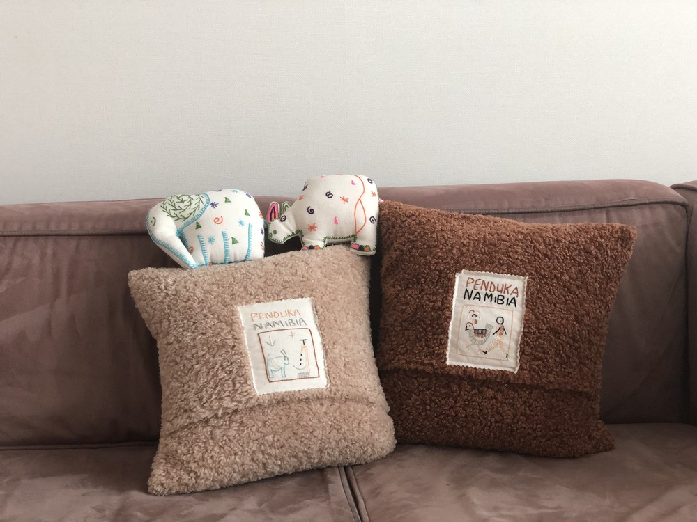 펜두카의 나미비아 여성들은 일상 속 소중한 순간을 자유롭게 손자수로 표현합니다.