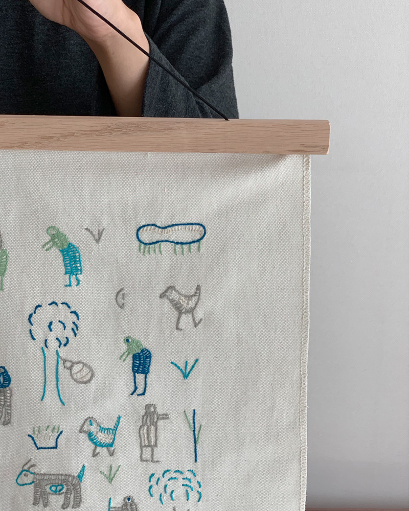 눈을 감고 올록볼록 자수를 만져보며 이야기를 상상해보세요.