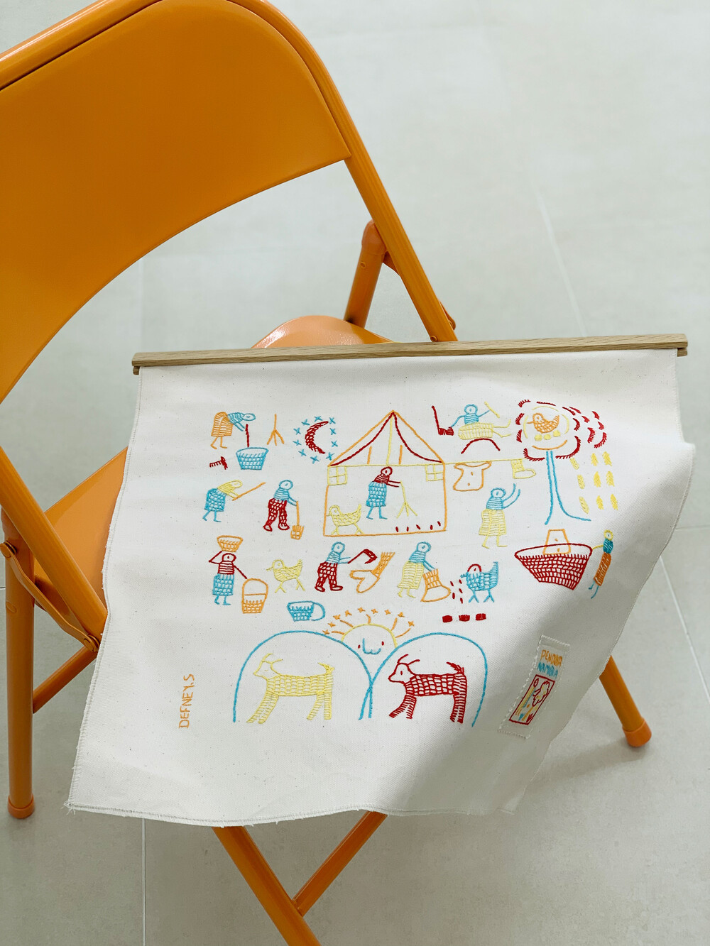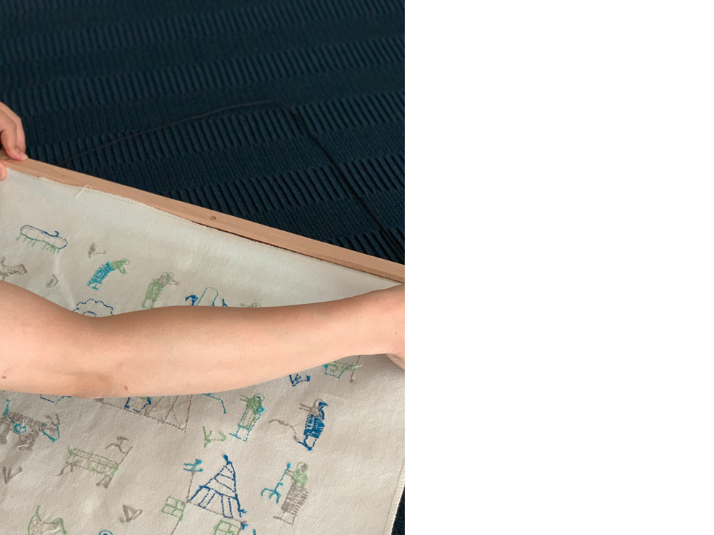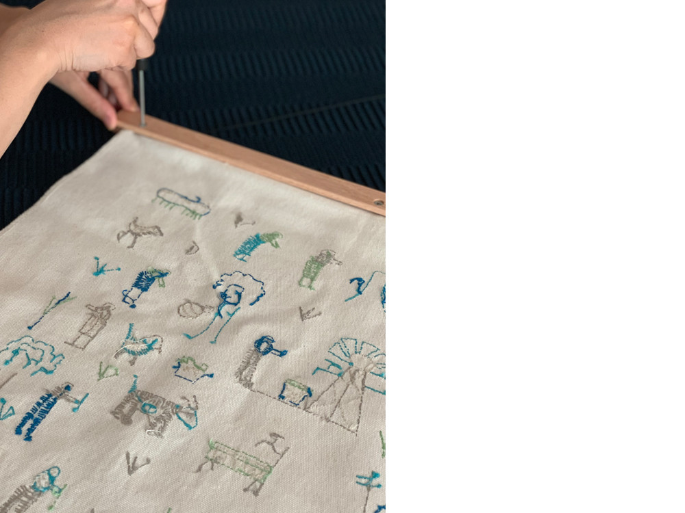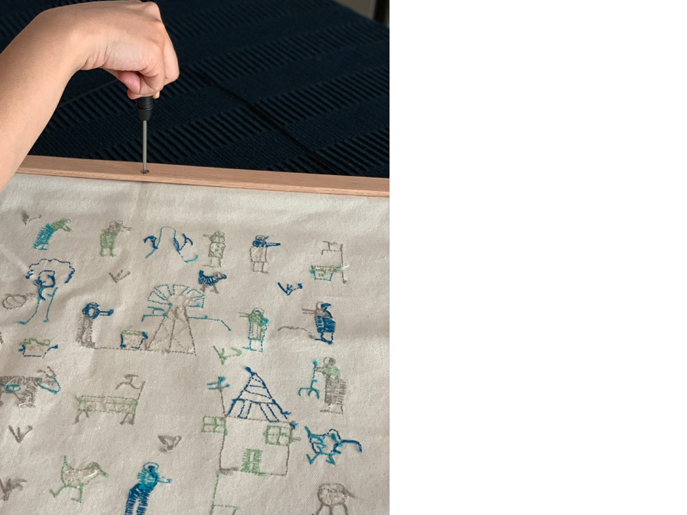 눈을 감고 올록볼록 자수를 만져보며 이야기를 상상해보세요.