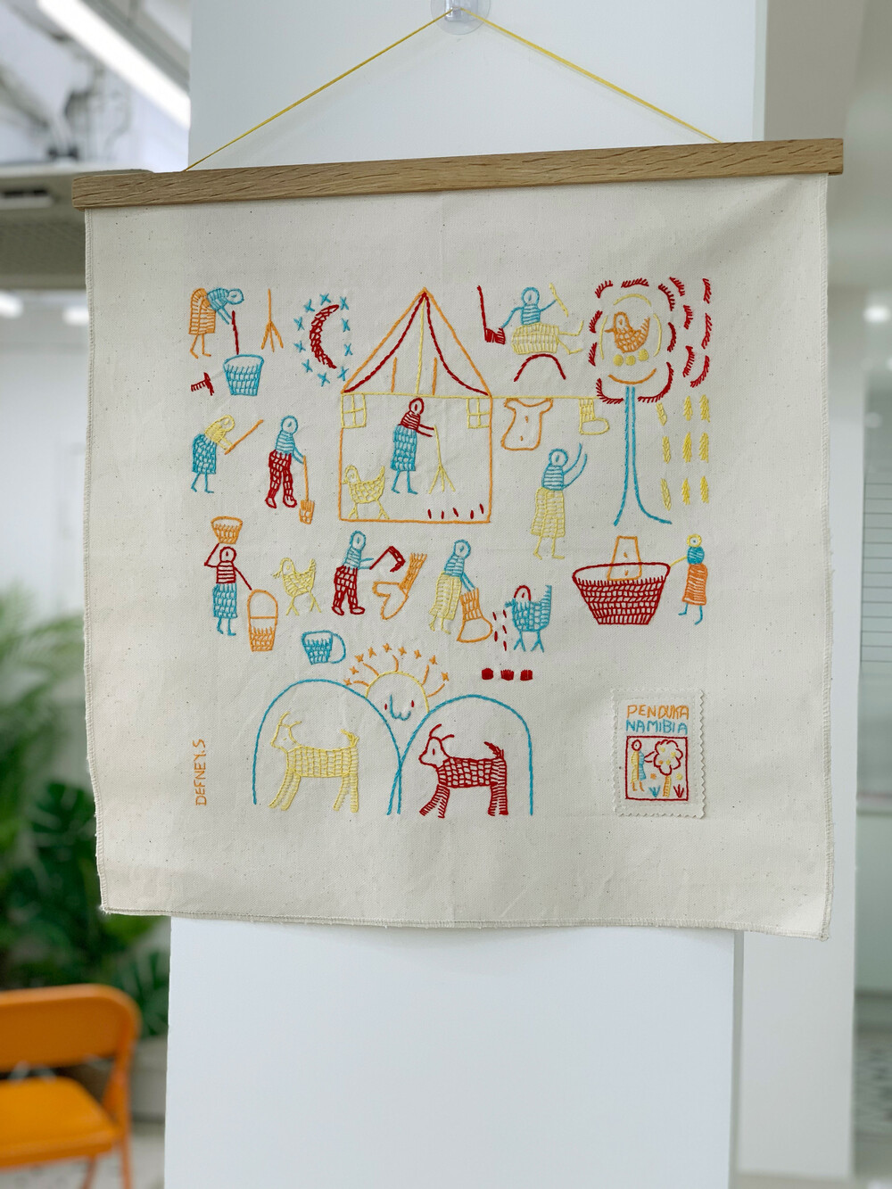 펜두카의 나미비아 여성들은 일상 속 소중한 순간을 자유롭게 손자수로 표현합니다.